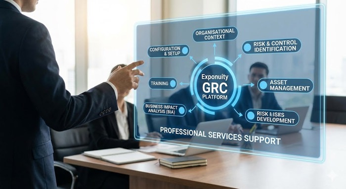Professional services specifically in support of adopting our comprehensive Governance, Risk and Compliance tool, Exponuity.